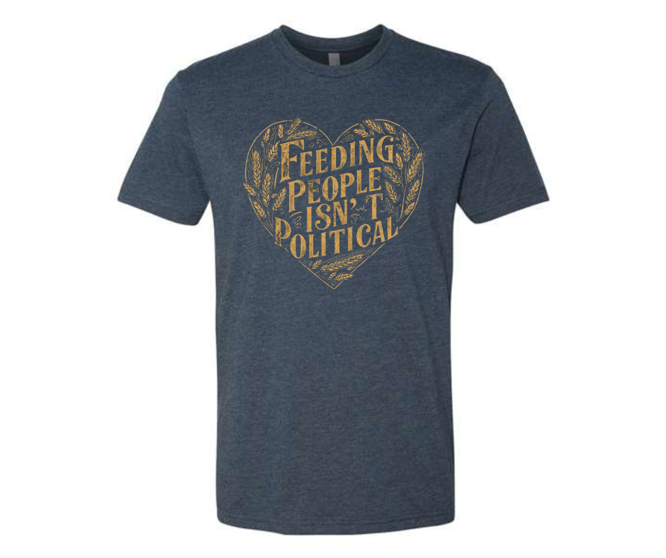 Our “Feeding People Isn’t Political” and “Feed People. Not the Division.” tees are a reminder that kindness, compassion, and community matter more than anything that divides us.
