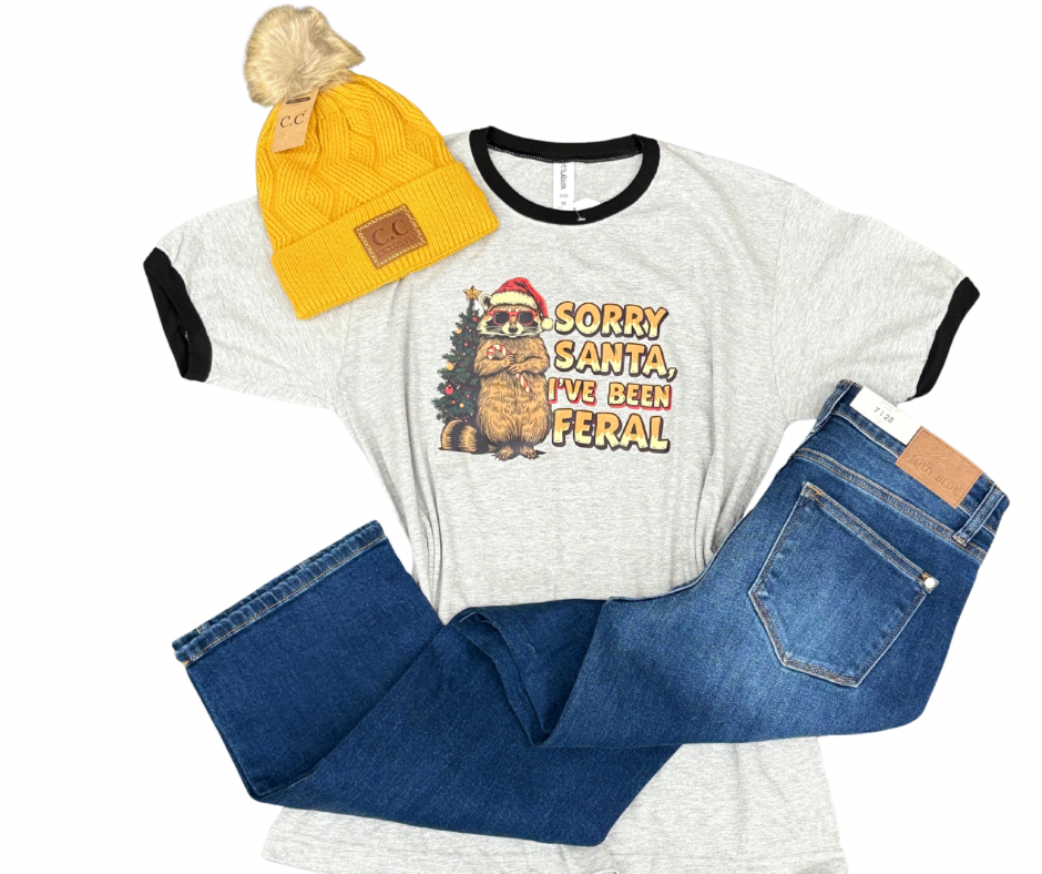 🦝🎄 “Sorry Santa, I’ve Been Feral” Christmas Tee